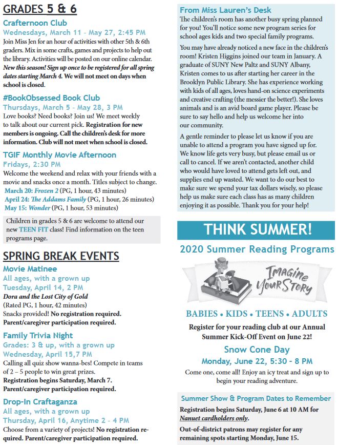 Children's Programs Spring 2020
